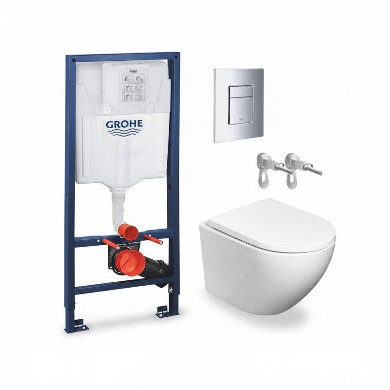 BASTIDOR GROHE PACK CISTERNA EMPOTRADA Y PULSADOR CROMO BR CON INODORO SUSPENDIDO ROUND SMART 52cm TOR 3 TAPA ENVOLV MARCA KP
