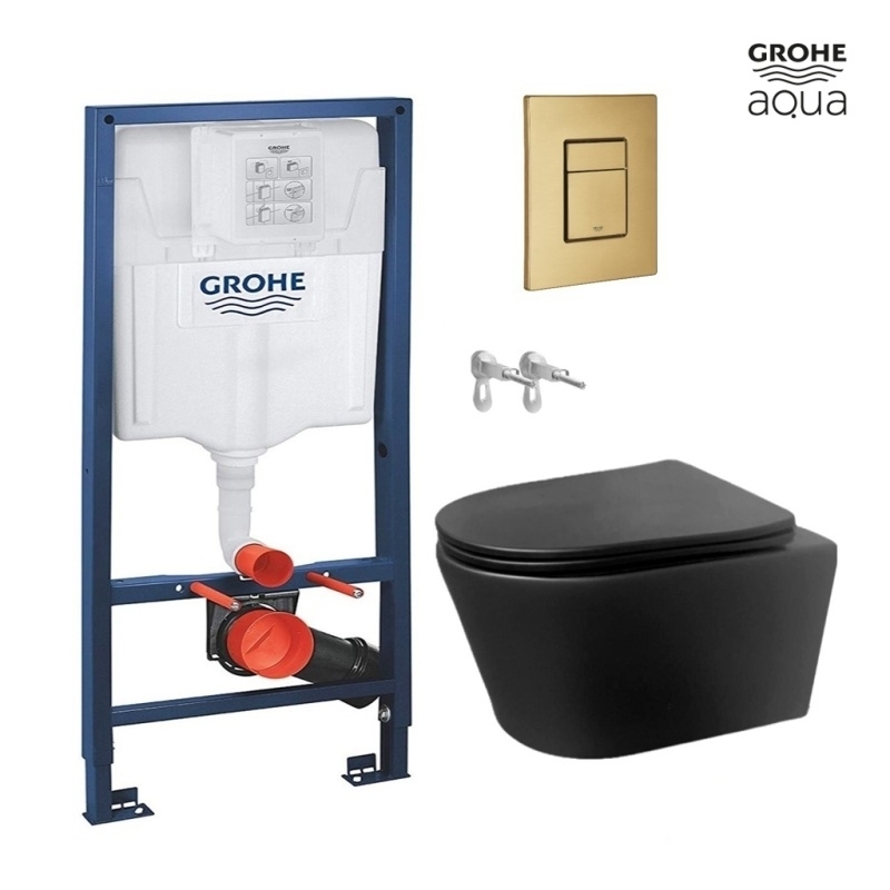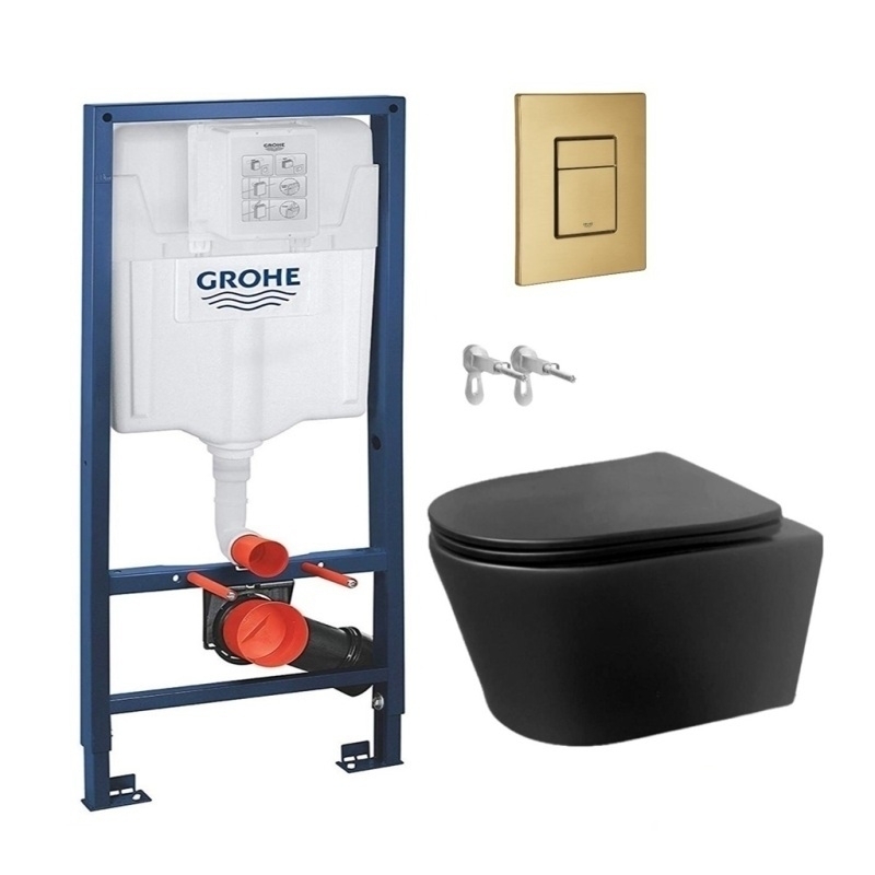 Bastidor GROHE pack cisterna empotrada y puls SKATE Oro Cepillado con inodoro suspendido Tornado Lia Ekovia negro mate AzulBath
