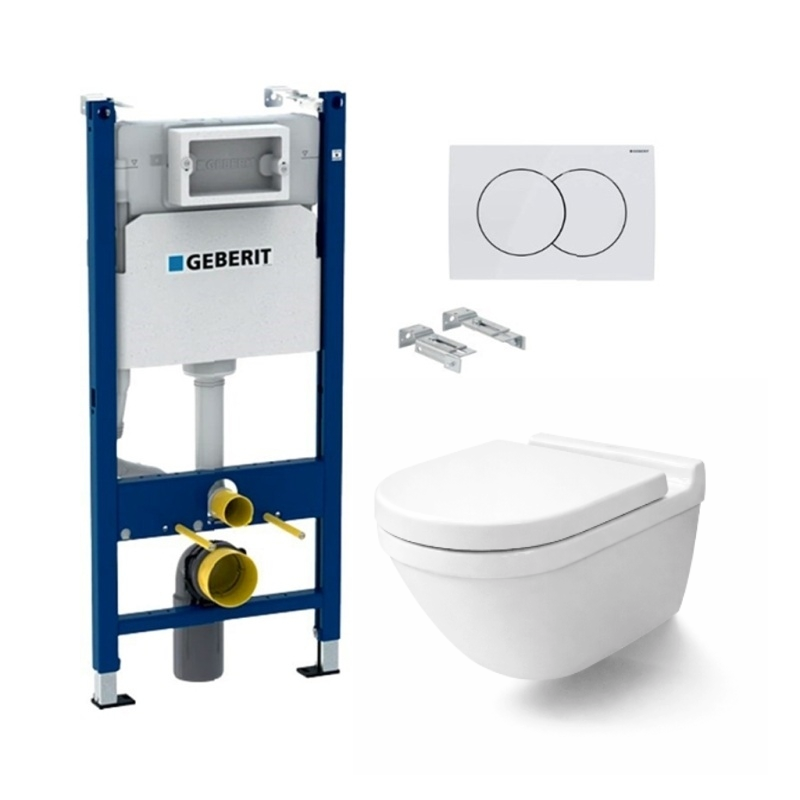 Pack Geberit Duofix: bastidor con cisterna + pulsador blanco Delta 01 + WC suspendido Duravit Starck 3 Rimless blanco