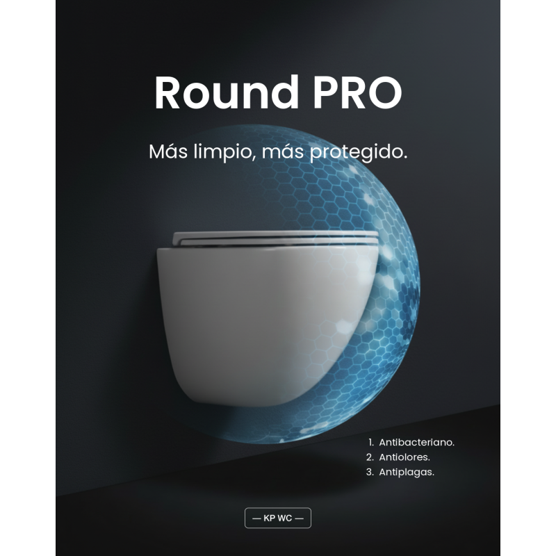 El diseño totalmente cerrado del WC Round Pro aporta ventajas clave frente a los inodoros suspendidos convencionales, ya que evita la acumulación de suciedad, humedad y bacterias en zonas de difícil acceso. Gracias a esta construcción, el inodoro contribuye a mantener un entorno más limpio, higiénico y fácil de mantener en el día a día.