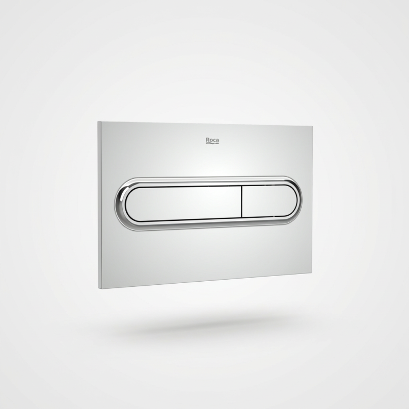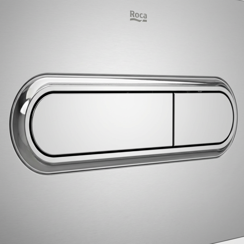 Placa de accionamiento Roca PL1 DUAL (ONE) Cromado Brillo – Ref. A890195001 con descarga dual. No es necesaria la utilización de herramientas para su instalación.
