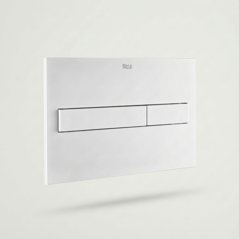 Placa de accionamiento Roca PL7 Dual (ONE) Blanco Mate – Ref. A890188207 con descarga dual. Instalación rápida y sencilla, sin necesidad de herramientas.