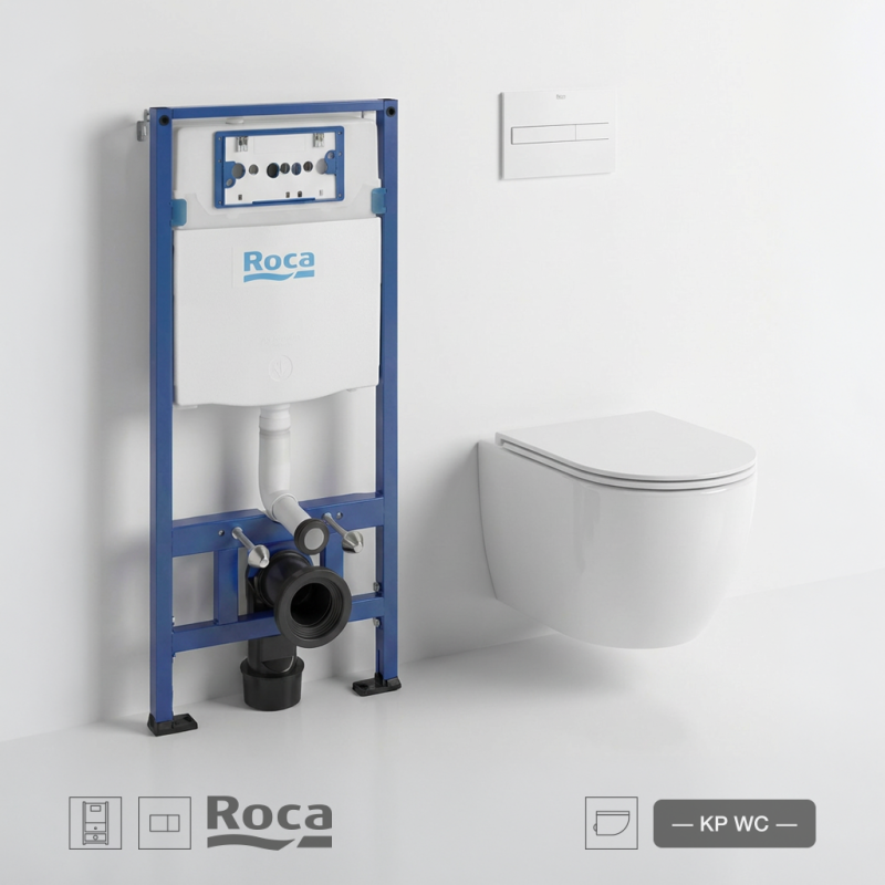 Pack WC suspendido con bastidor y cisterna Roca Duplo, pulsador PL7 blanco mate e inodoro Koller Pool Round Pro Total Clean