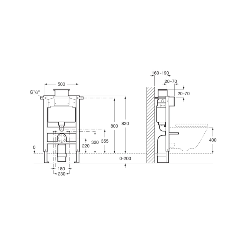 500 x 160 x 820 mm