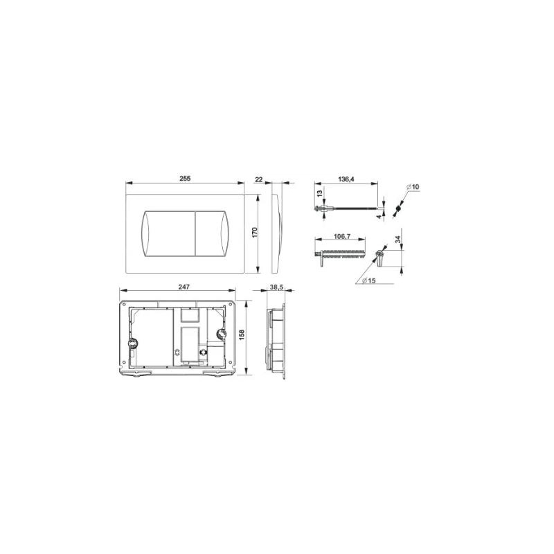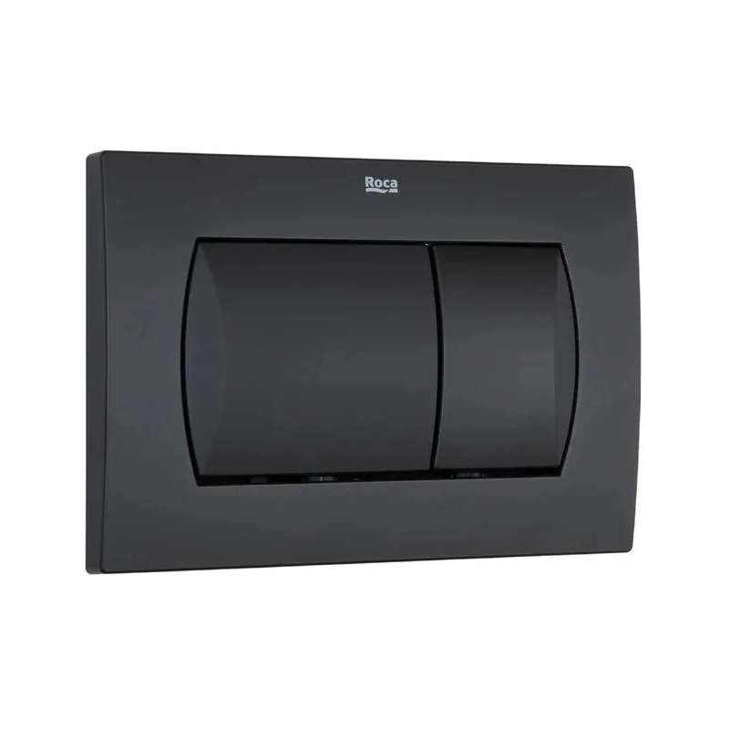Placa del pulsador Roca con dos botones para doble descarga ahorro en color negro MATE, se adapta a todo tipo de paredes.
