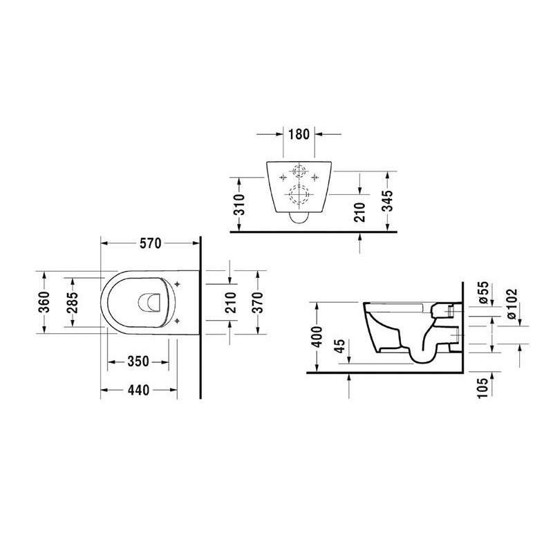 Inodoro Starck 3 marca Duravit 2527090000, tiene incorporado la tecnología Rim-ex, lo que facilita la limpieza del inodoro hasta un 90% en cada uso con el simple vaciado de la cisterna, ya que el agua produce un remolino con la potencia suficiente para no dejar residuos. Tecnología Hygiene Glaze a un nivel nunca conseguido hasta ahora, en 24 horas elimina hasta el 99,99% de bacterias, bloqueando la proliferación de bacterias como el Colibacilo y el Echerichia coli. Es un modelo suspendido con tapa fina Soft-close de cierre delicado, conveniente para mitigar los impactos indeseables e ideal para hogares con niños pequeños, previniendo de esta manera el riesgo de atrapamiento de los dedos al descender la tapa. Medida 54x37,5x36,5.