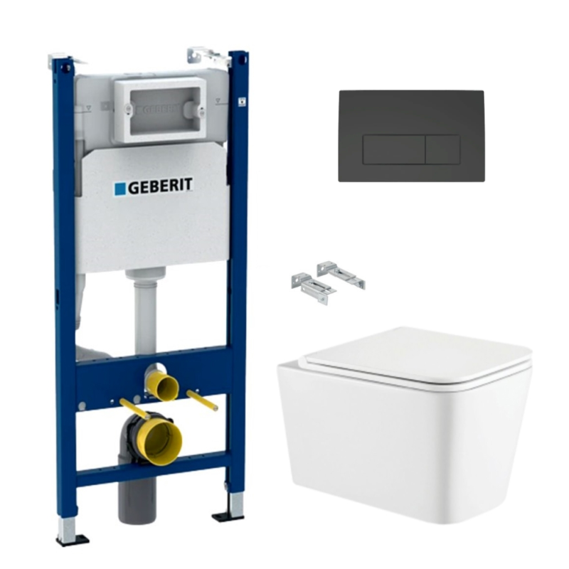 Bastidor GEBERIT Duofix pack cisterna empotrada y pulsador DELTA 50 negro mate CON INODORO SUSP. TREND BLANCO VORTEX KP