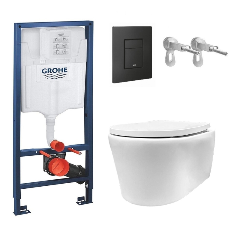 Bastidor empotrado GROHE Pack con cisterna y pulsador Even negro mat, con inodoro suspendido Rimless LIA blanco de AzulBath
