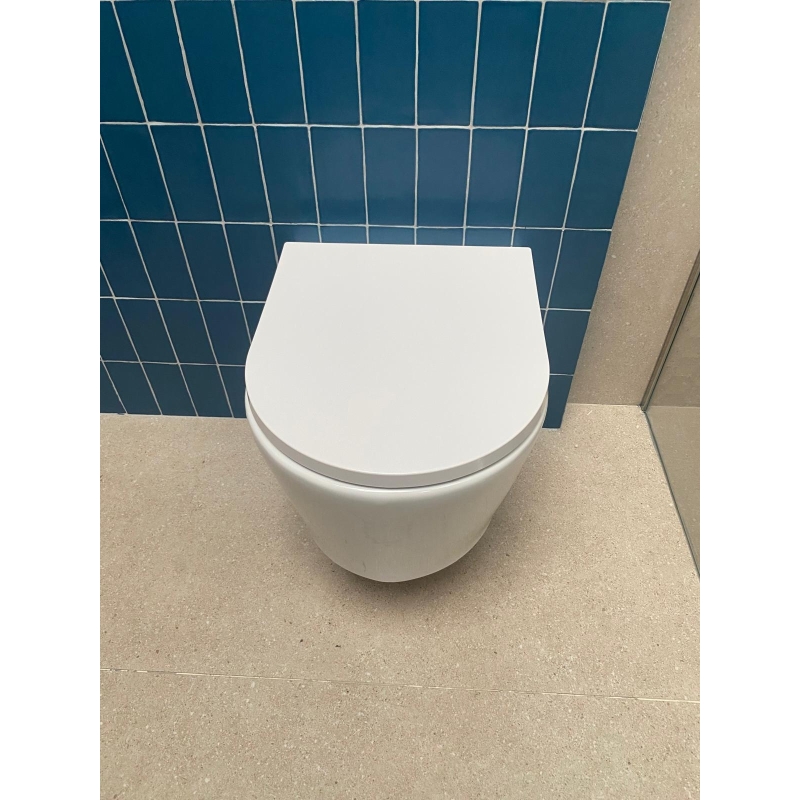 Este conjunto se compone del inodoro suspendido Lia Ekovia de AzulBath Tornado en color blanco brillo con tapa amortiguada, pulsador PL7 Dual Negro mate y cisterna con bastidor oculto Roca Duplo. Incluye anclajes para montaje.