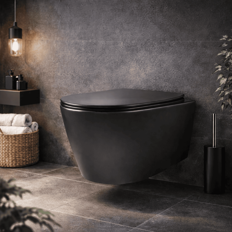 Incluye asiento y tapa con sistema Soft Close, que garantizan un cierre suave y silencioso, aportando mayor confort y seguridad, especialmente en hogares con niños. Fabricado en cerámica de alta calidad, combina resistencia, durabilidad y un diseño contemporáneo en acabado negro mate, una de las tendencias más demandadas en baños actuales.