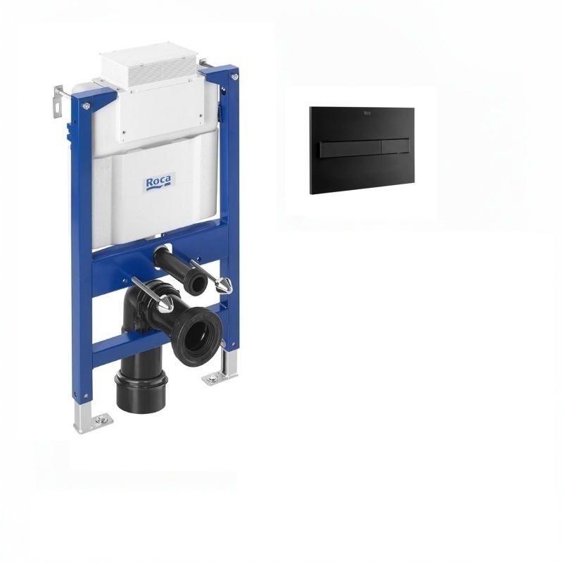 Conjunto de cisterna para empotrar y bastidor Roca Duplo BAJO VENTANA, pulsador Roca PL7 Dual (ONE) Negro Mate y Kit adaptación pulsador.