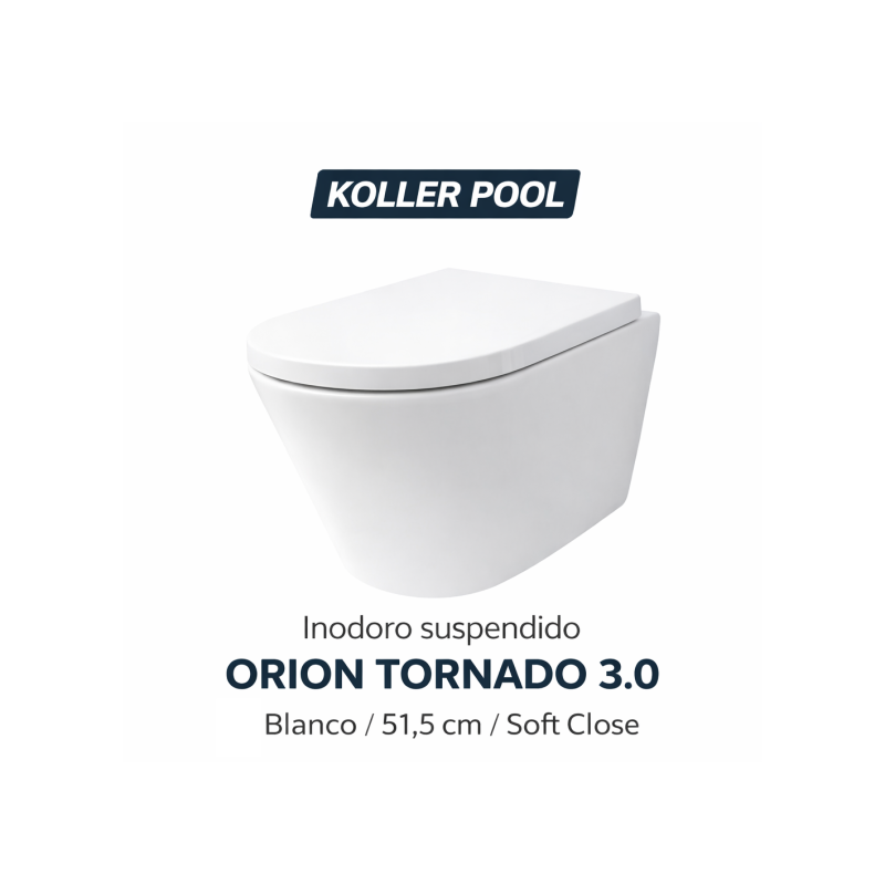 INODORO SUSPENDIDO ORION TORNADO 3.0 BLANCO CON ASIENTO Y TAPA ENVOLVENTE DE KOLLER POOL