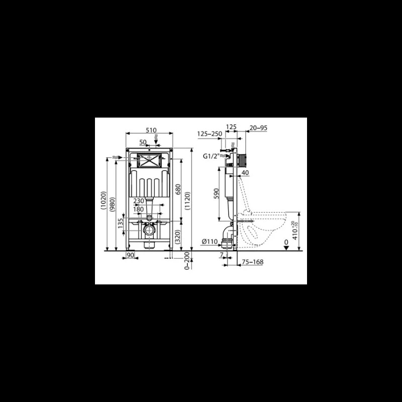 Bastidor Cisterna Empotrada SATAMSK 112x51x12.5 instalación fácil para muros o muros de pladur, con opción de conexión a distancia 180mm a 230mm, ajustable para sueldo de 0-200mm de espesor. Calidad y durabilidad garantizada.